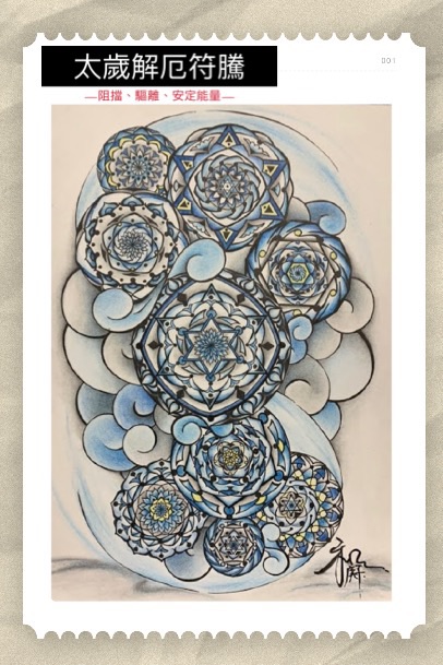 《太歲解厄符騰》為消災解厄,繪製過程處在持誦「北斗經」的音頻下全神灌注製圖… 增加防禦抵抗,戰鬥的能量,驅趕負能量入侵影響正能量氣場運轉